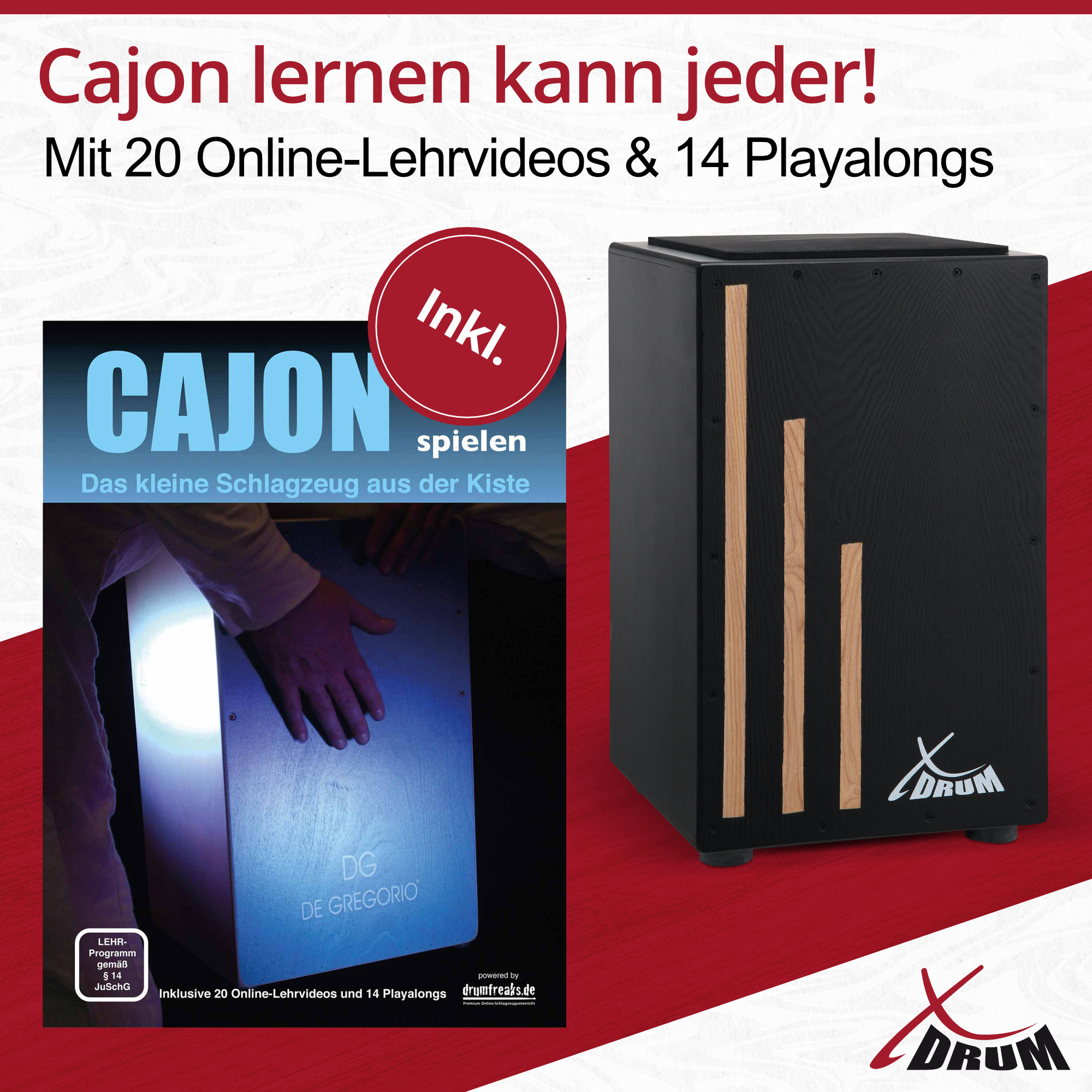 - Cajon-Schule für Einsteiger mit 20 Online-Lehrvideos und 14 Playalongs
