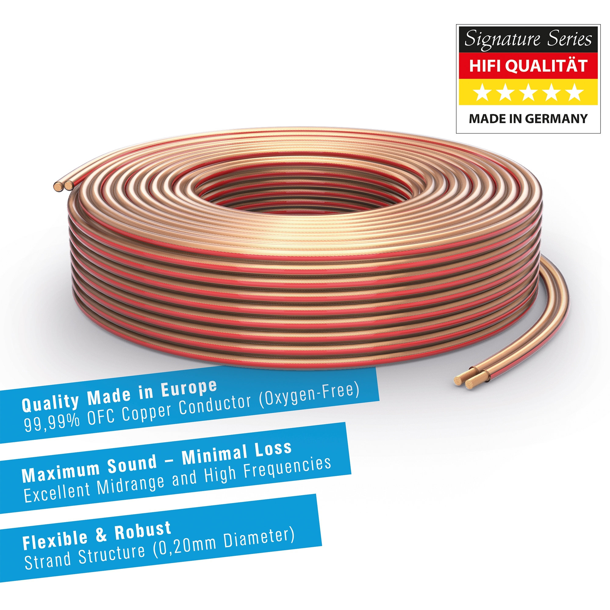 - Cable de altavoz HiFi - conductores internos de cobre puro (99,99% Oxygen-free copper - Sauerstofffreies Kupfer)