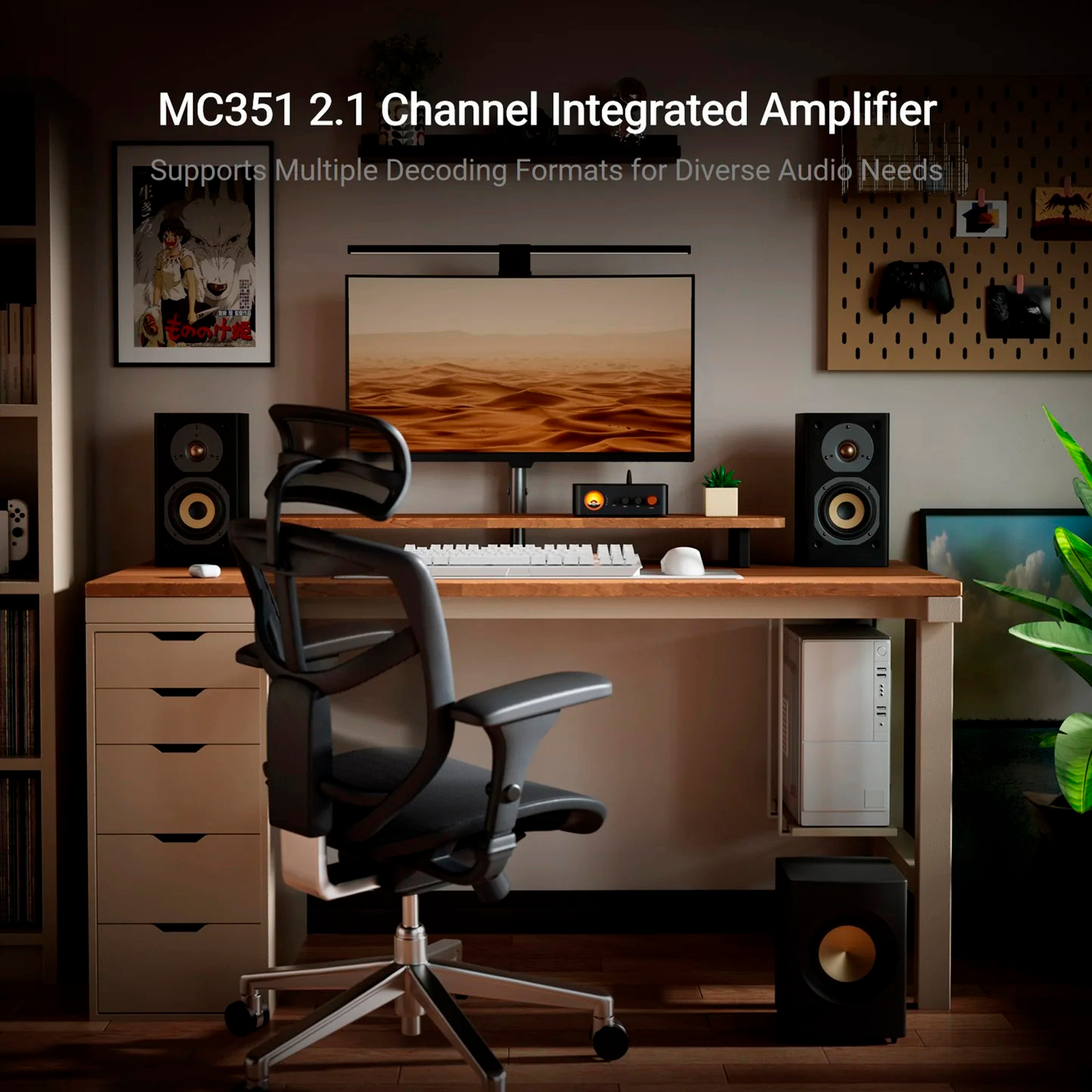 El diseño del MC351 cuenta con un medidor VU inspirado en lo vintage que muestra visualmente la señal de audio, mejorando la experiencia auditiva en general. Con los controles de graves y agudos del amplificador, los usuarios pueden ajustar finamente la salida de audio para garantizar un sonido equilibrado y natural. Además, el amplificador tiene una robusta carcasa metálica y sistemas de refrigeración mejorados, incluyendo aletas de aluminio y ventilación lateral, para asegurar un rendimiento óptimo y durabilidad.