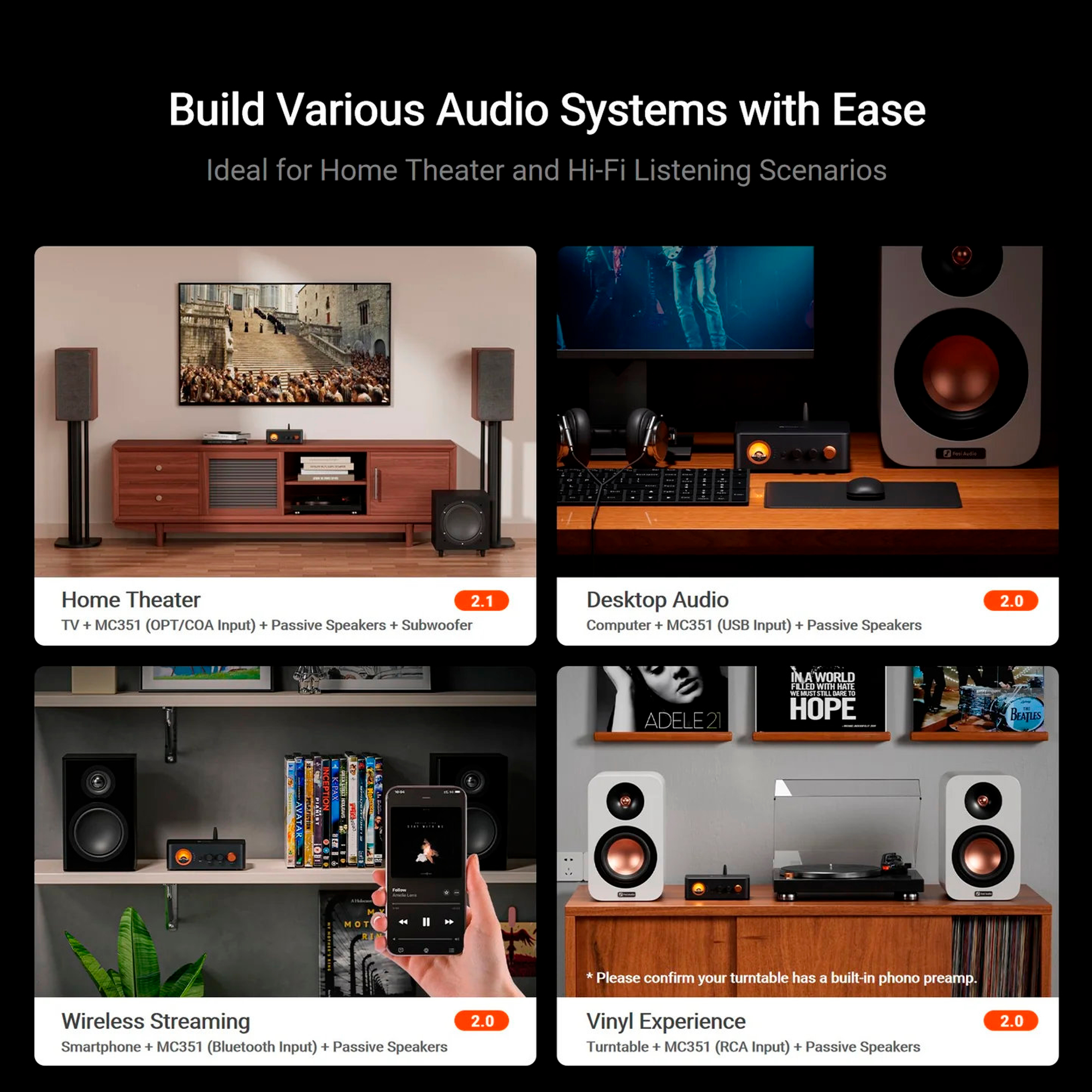 El Fosi Audio MC351 es ideal tanto para aplicaciones profesionales como domésticas y ofrece una solución versátil y potente para mejorar tu sistema de audio. La combinación de funciones avanzadas, construcción sólida y diseño clásico lo convierte en una excelente opción para audiófilos exigentes.