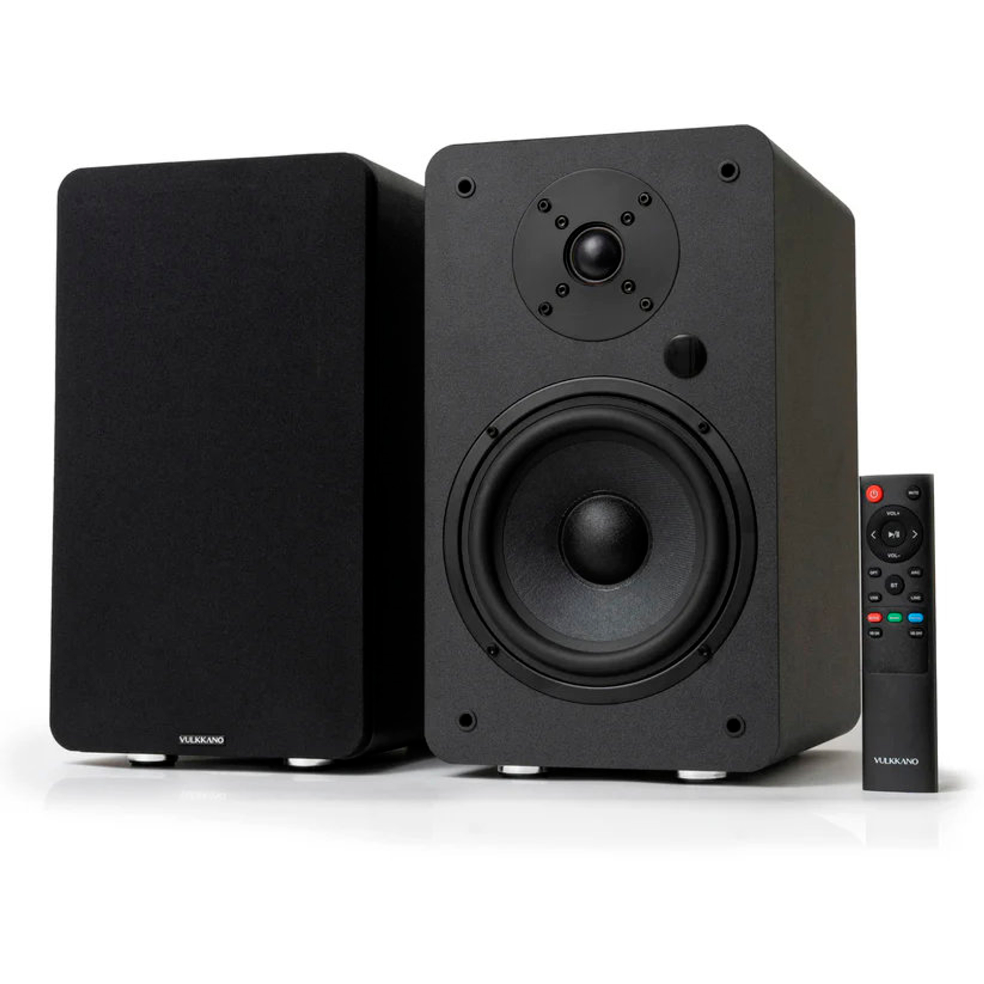 Las opciones de conexión de los Vulkkano más potentes son completas y versátiles. La entrada digital óptica abre la puerta al uso de dispositivos y fuentes de sonido digitales actuales, mientras que la entrada analógica cinch satisface a los amantes de la música con sus colecciones de vinilos y CDs. Bluetooth 5.0 también está presente para ofrecer el mejor sonido sin interferencias.