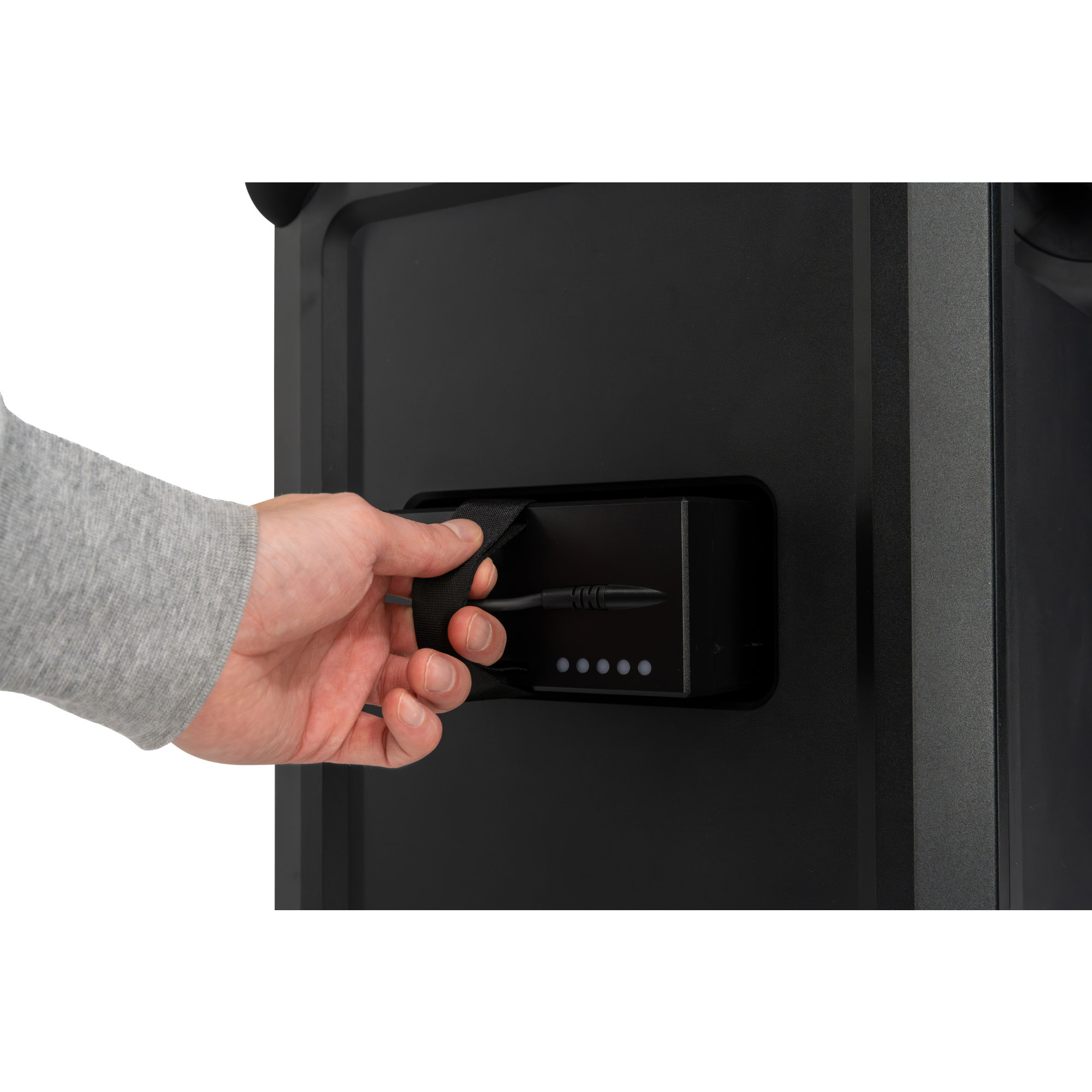 Con su diseño bien pensado, este altavoz portátil ofrece una relación excepcional entre tamaño y potencia. El asa integrada y la compatibilidad con strap y backpack opcionales facilitan el transporte. La potente batería ofrece hasta 40 horas de reproducción a volumen medio y se puede cambiar rápidamente si es necesario: perfecto para noches largas sin interrupciones.